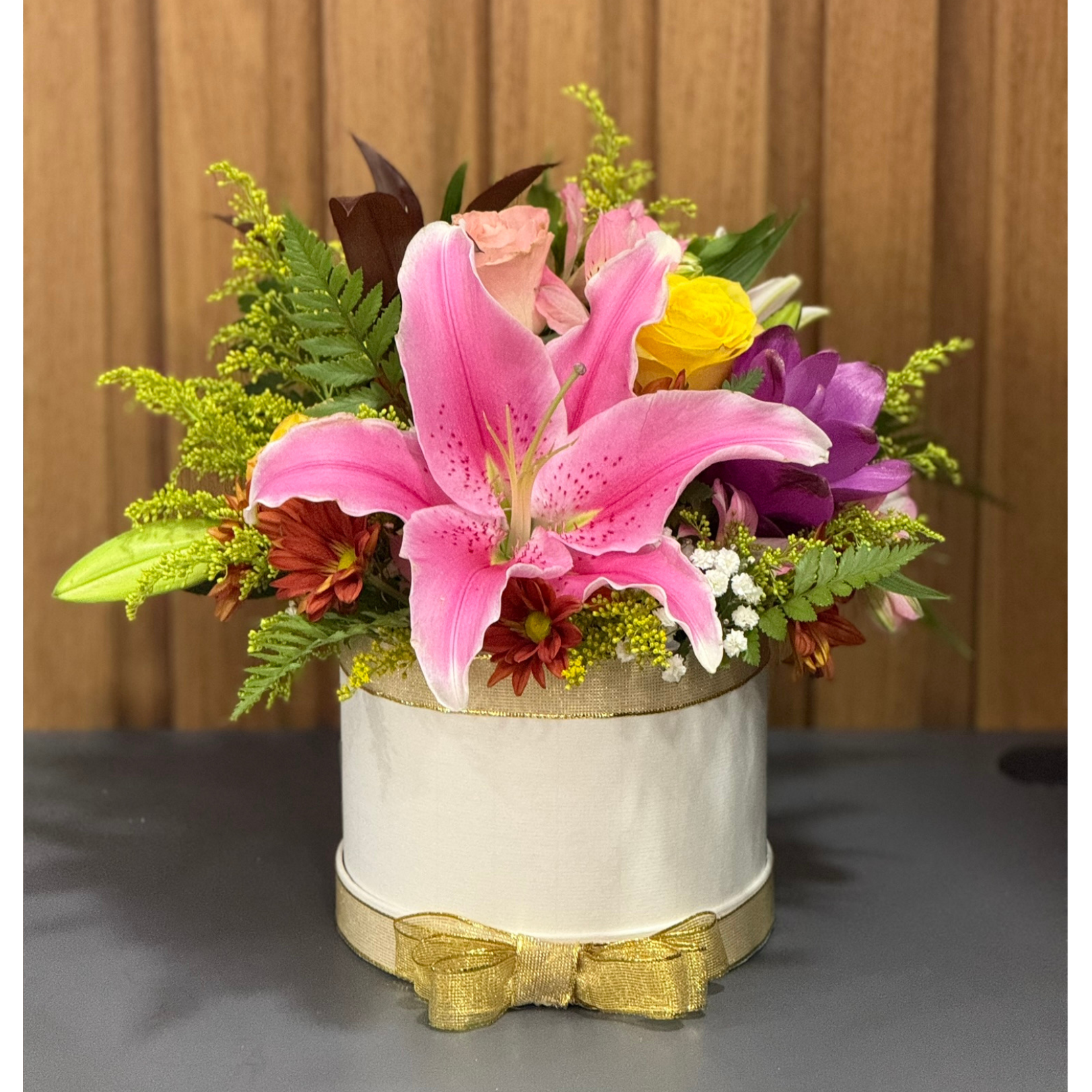 Mini box luxo composto por flores nobres em formato desconstruído
