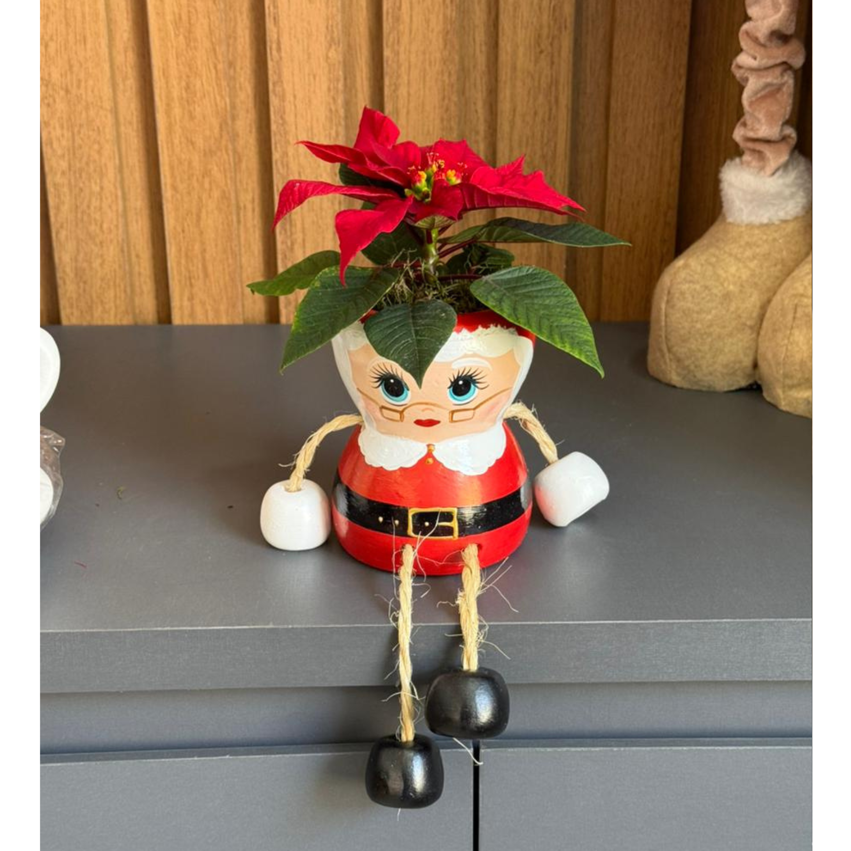 Porta flores com pés e mãos pendentes com poinsetia (flor do natal)